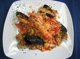 Misto mare “La Ola” Insalata di mare Salmone e spada marinati su letto di rucola Cocktail di gamberi Muscoli alla marinara Prosciutto di Parma e melone